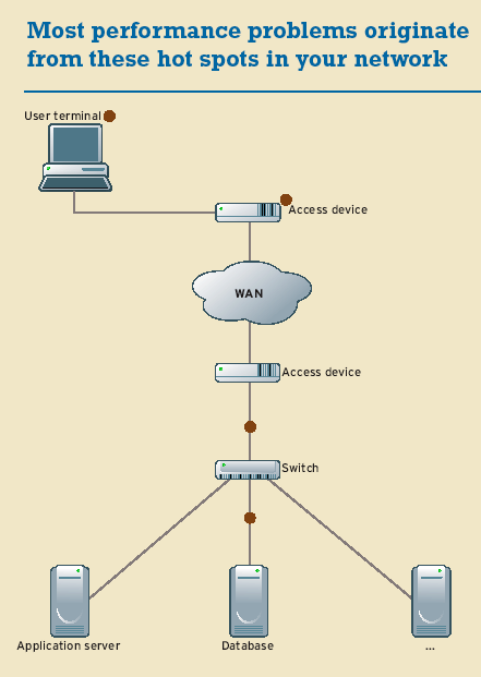 Network-access equipment on the server segment: Although user-side devices are likely to drop some traffic at the WAN boundary, network-access equipment on the server side can drop a lot more if the network isn't tightly managed. For example, a VPN or SSL concentrator on the server side of the network usually exhibits performance problems long before the end user's equipment starts to hiccup, while a router handling transmission flows for a few thousand remote users has major queue-management demands and can get clogged with traffic (unless you increase your available WAN bandwidth).
