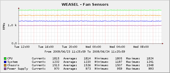 I try to monitor as many of the motherboard sensors as possible, since they often reveal a variety of hidden problems. Unfortunately, there is not a single universal source of motherboard sensor data available, so I have had to write multiple script templates that each pull sensor readings from device-specific sources, and then make them look and feel the same inside Cacti. This specific script template is for the Everest Ultimate system diagnostic toolkit for Windows, as exposed through WMI on the host operating system and read by the wmic utility on the Linux management station.