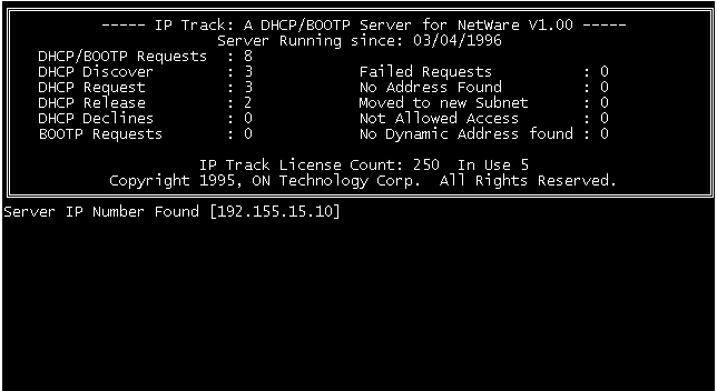 Before Novell released NetWare/IP 2.2, the only choice that NetWare shops had was ON Technology's IPTrack 1.0. Provided as a set of NLMs, IPTrack runs on any NetWare 3.x (and higher) system.