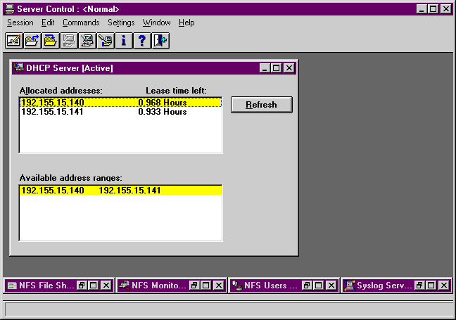 NT's DHCP server is easy to use. The ability to add new DHCP options was very easy, and the address management tasks were straightforward. You can add ranges of addresses, and it also lets you exclude specific address blocks. You can also manage multiple NT-based DHCP servers from a single console, which can be a blessing in a highly distributed environment. The ability to assign nonexpiring leases is also handy.