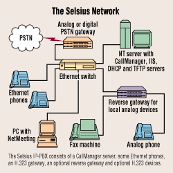 There's no shortage of H.323 point-solution products for network managers to consider, from end-user telephony products, such as Microsoft NetMeeting, to hardware-based gateways, such as Ascend Communications' MAX. However, only Selsius Systems offers a full product suite providing end-to-end connectivity services; the sum of the parts is a fully functional virtual PBX on your existing LAN.